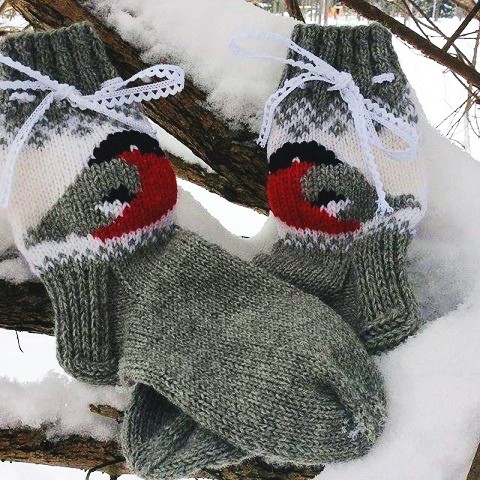 Вяжем жаккард со снегирями