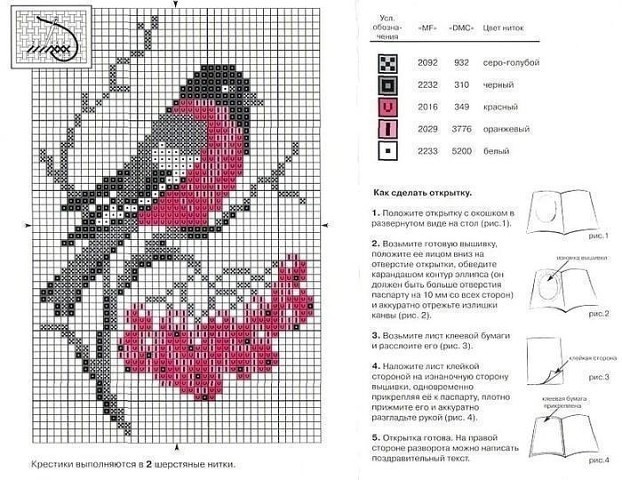Схема со снегирями подходит как для вязания жаккарда, так и для вышивки крестиком.