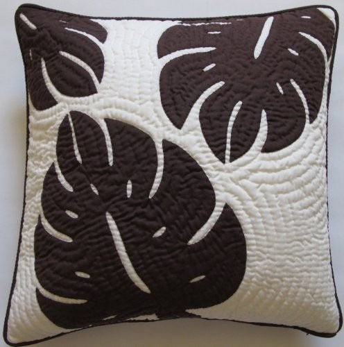 Красивые декоративные подушки с аппликациями, например, в виде листьев монстеры выглядят в интерьере очень атмосферно.