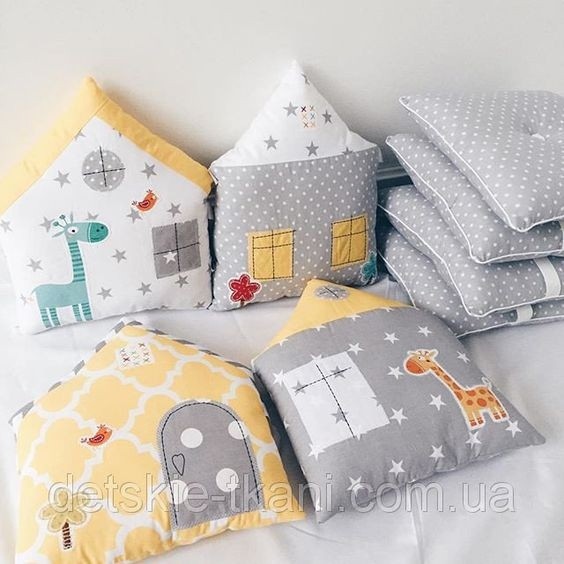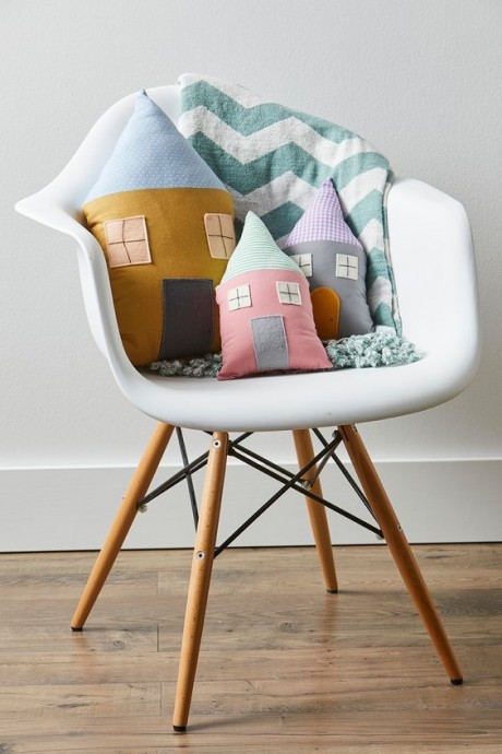 В зависимости от того, какие домики вы придумаете - эти подушки могут располагаться как в детской, так и в зале.