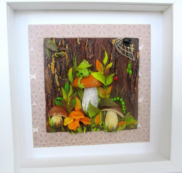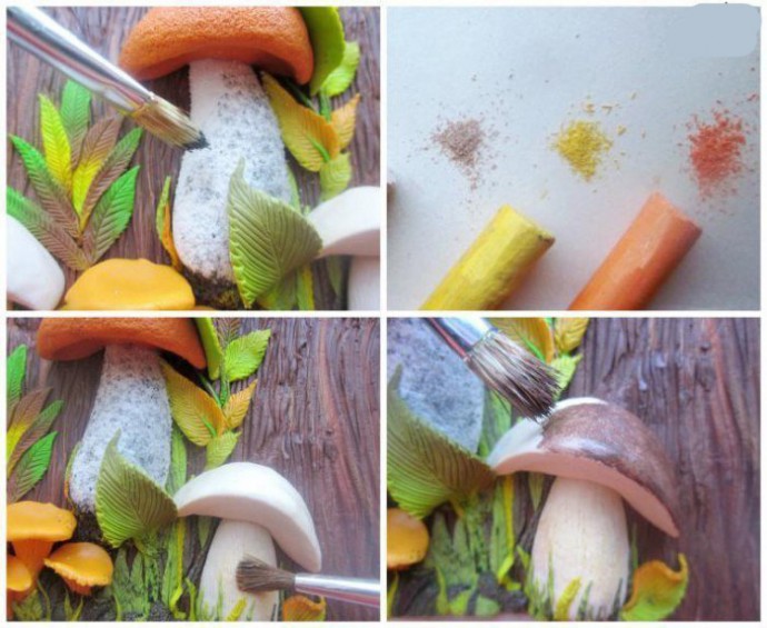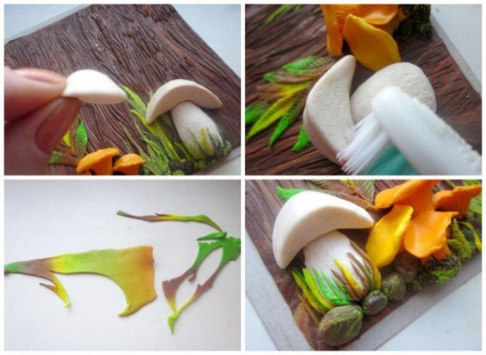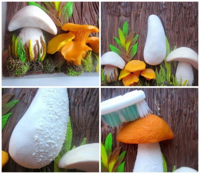 Картину "Грибные радости" можно слепить как из пластилина, так и из полимерной глины тоже.