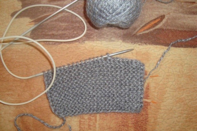 Набираем на спицы 24 петли и вяжем 24 ряда платочной вязкой ( лицевые и изнаночные ряды – лицевые петли).
