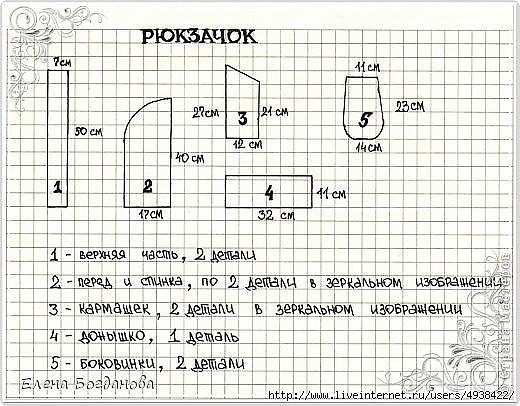 10. И вот этим самым длинным целым соединяем перед, донышко и спинку, чтобы получился рюкзачок. Не забудьте между спинкой и верхней частью вшить ручку и лямочки.