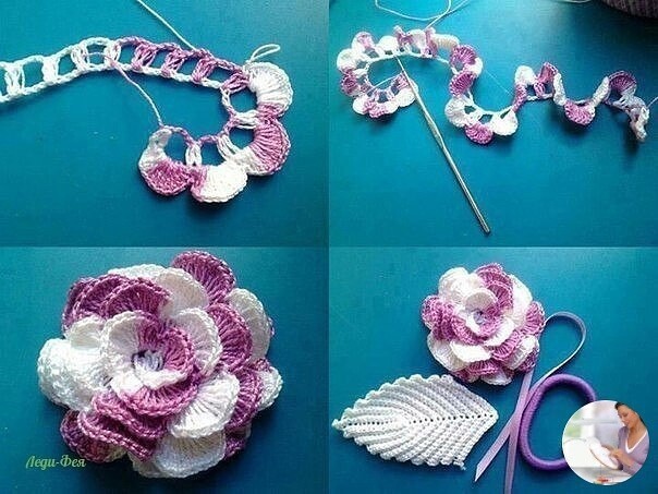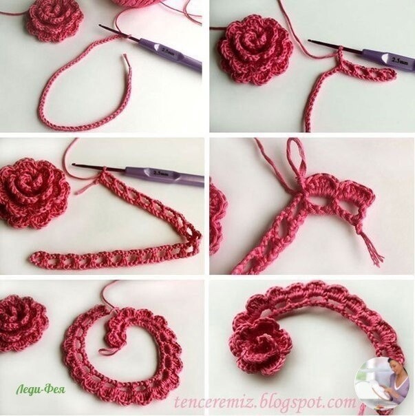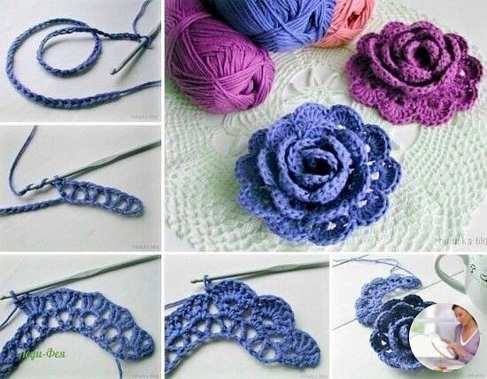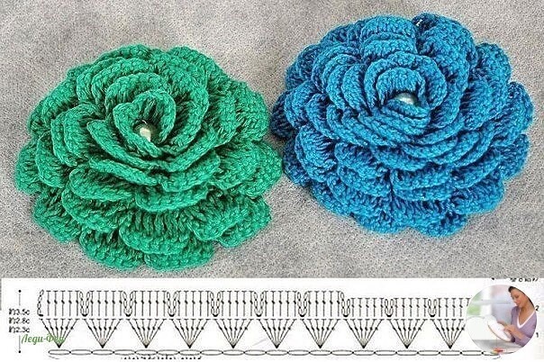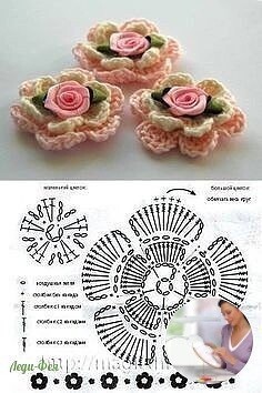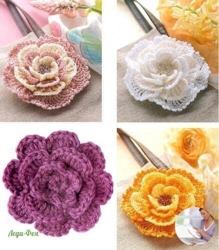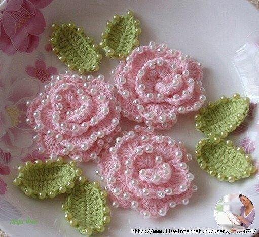 Вязаные розочки могут быть дополнительно украшены как бисером, так и бусинами.