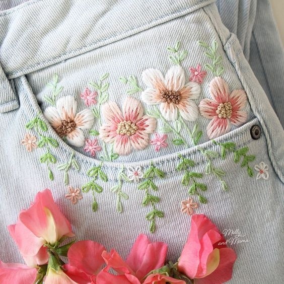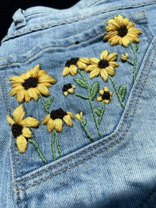 ​Украшаем карманы джинсов цветочной вышивкой: идеи для вышивального вдохновения