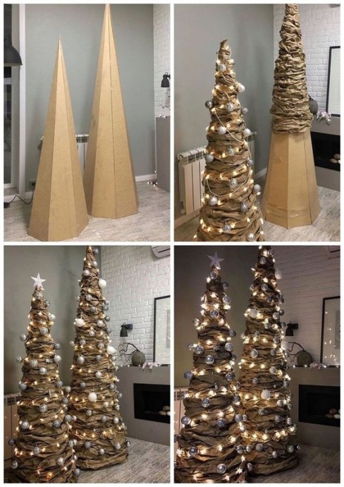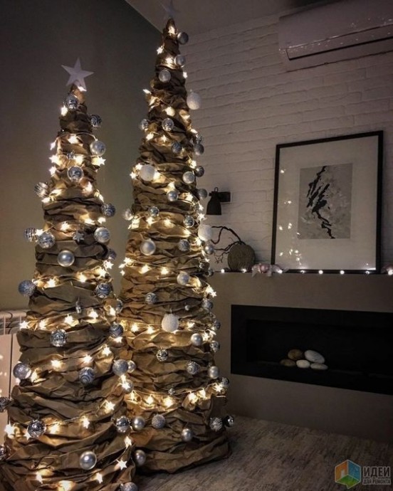 Ёлочки из упаковочной бумаги это, пожалуй, самый дешевый вариант украшения дома к новогодним праздникам.