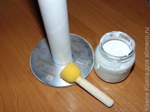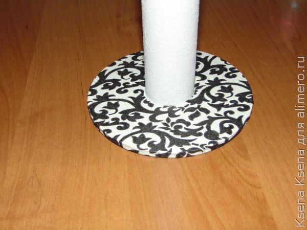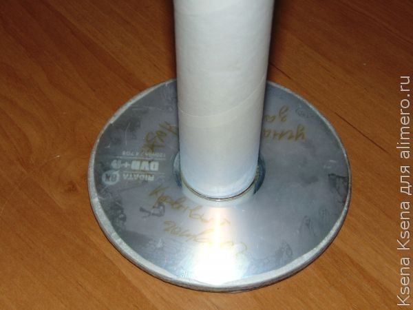Подставка под бумажные полотенца делается из ненужного CD-диска и тонкой картонной втулки.