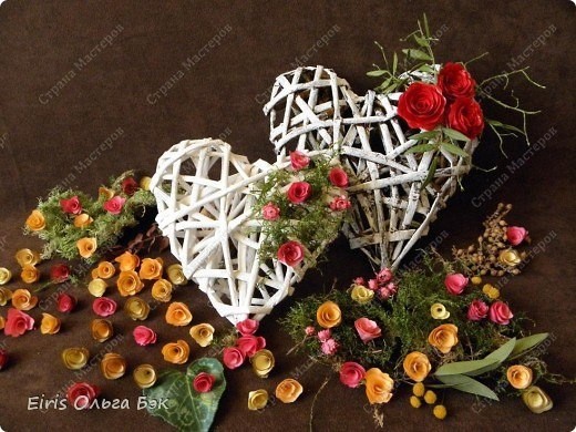 Декоративные сердечки из бумажных трубочек могут стать мобилями.