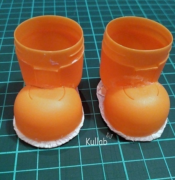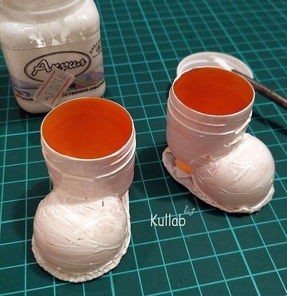 Сапожки для ёлки можно сделать из пластиковых яичек.