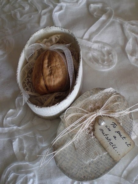 Даже ореховая скорлупа может стать упаковкой подарка в умелых руках.