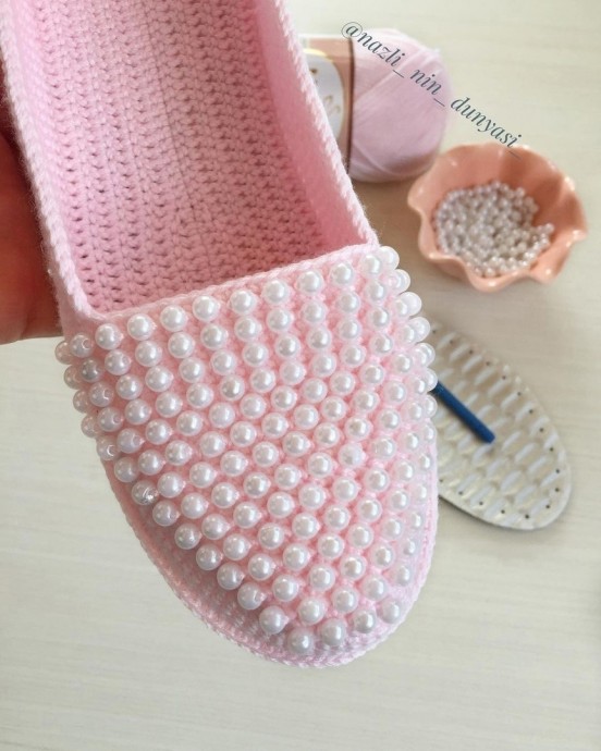 Впрочем, вы можете украсить так и покупные тапочки тоже.