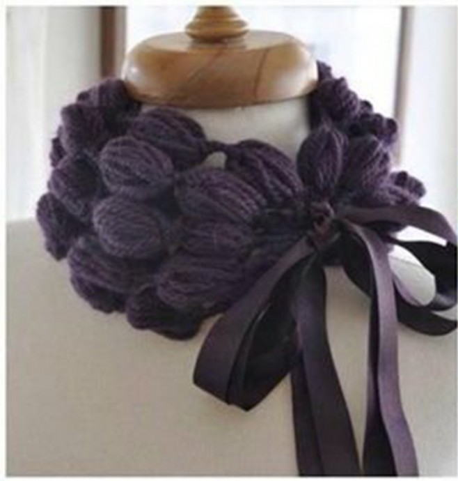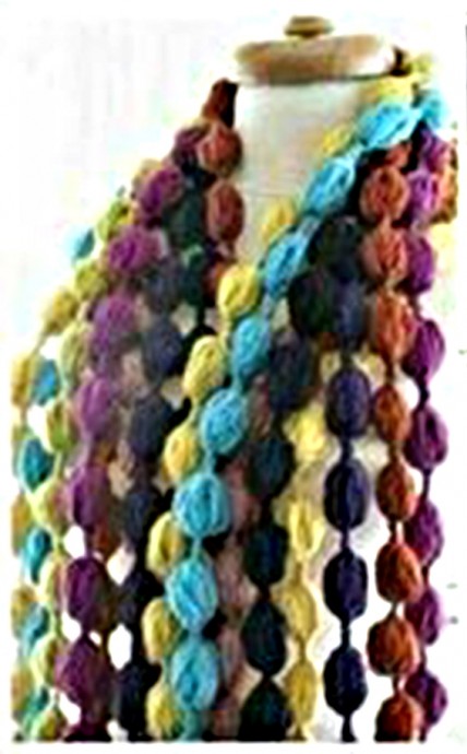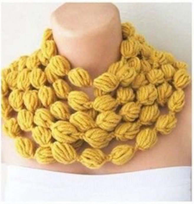 Интересная техника вязки похожа на цепочки, на которые нанизаны вязаные шишечки.