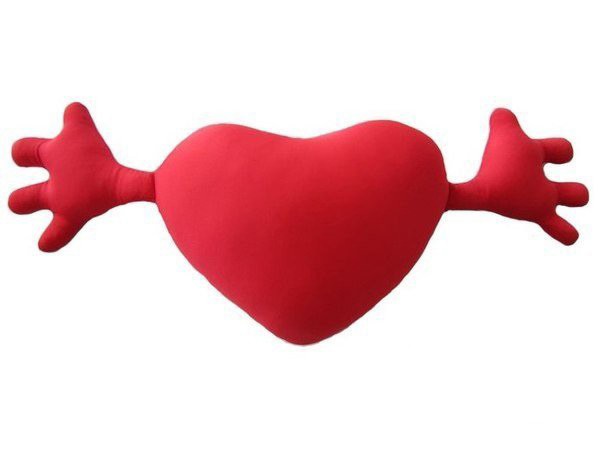 Подушка-сердце с руками способна заключить вас в свои уютные объятия.