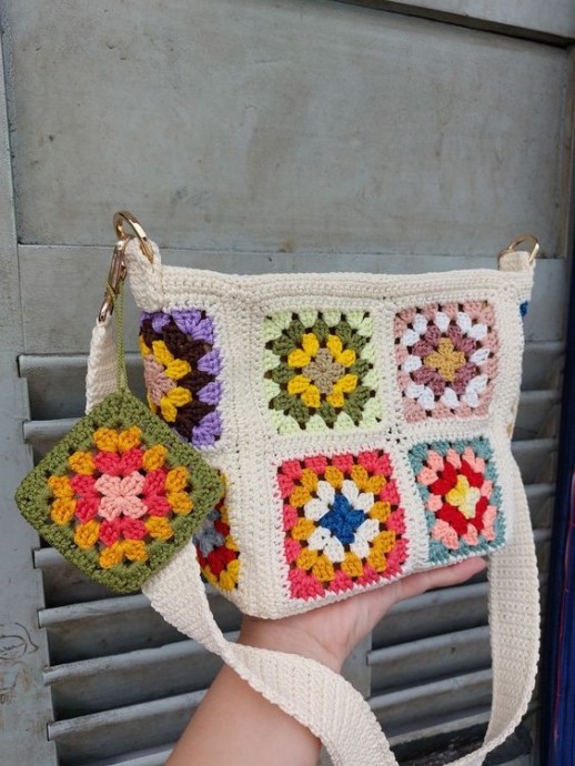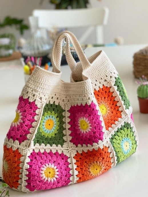 Сумочки с вязаными яркими мотивами