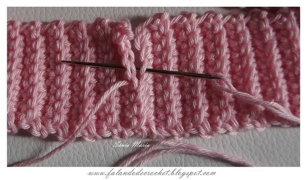 Дополнительно показан способ соединения вязаных узлов, где шов практически не заметен.