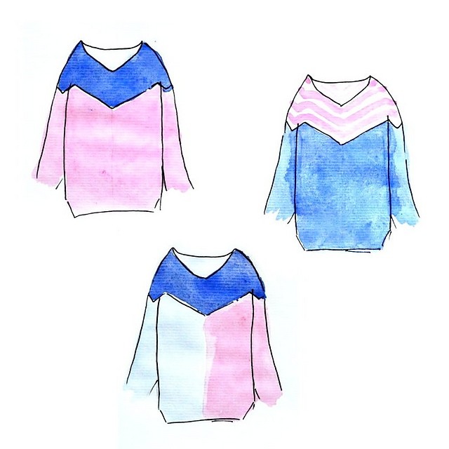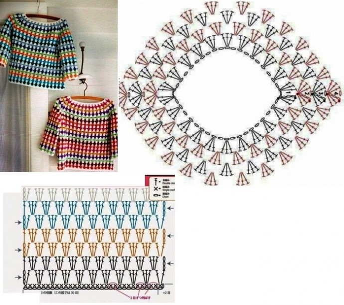 Летний пуловер со смещенной линией реглана - состоящий из разноцветных блоков выглядит еще красивее.