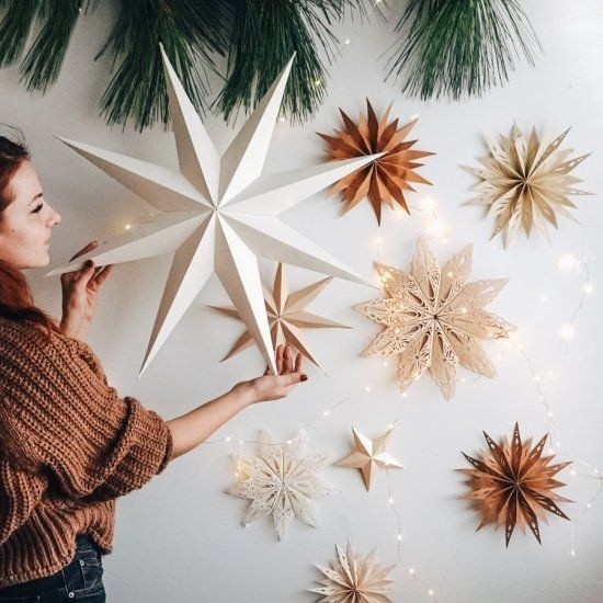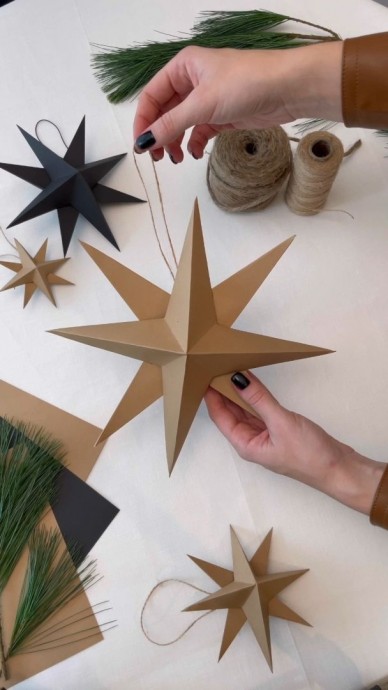 Декор интерьера звездами из картонаМатериалы: поталь, клей для потали, фен, утюг, цепочка, картон, ножницы, линейка, каран, кисточки, соединительные колечкиПроцесс:Я стремлюсь дост...