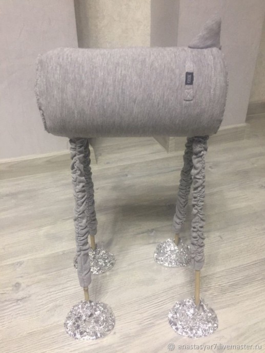 Дальше для утяжеления на ноги лося делаем что-то типа ботиночек из фольги и заливаем их гипсом.
