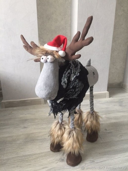 Ну и последний штрих одеваем на лося шапочку, повязываем на шею шарфик. Вот и лось наш готов.