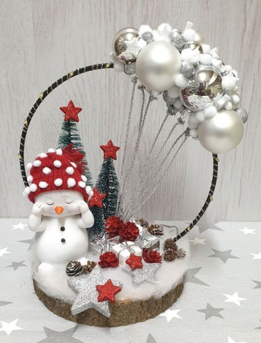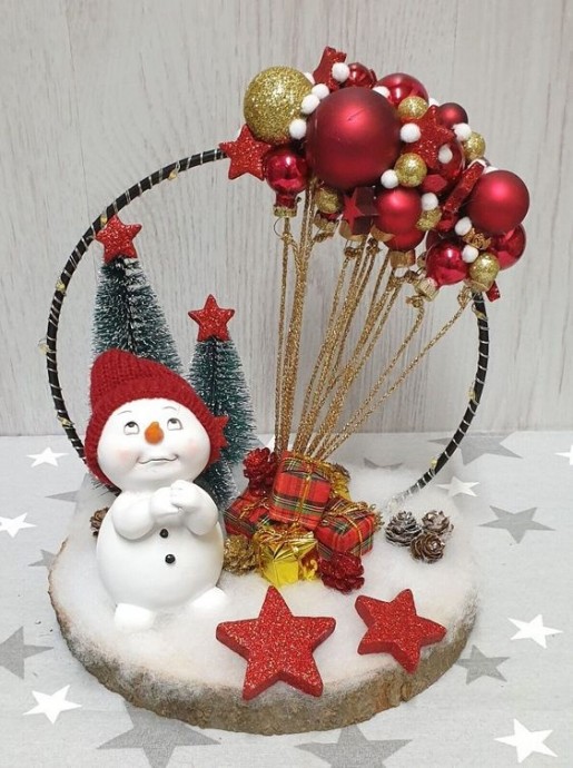 Новогодние инсталляции можно делать из того, что есть под рукой.
