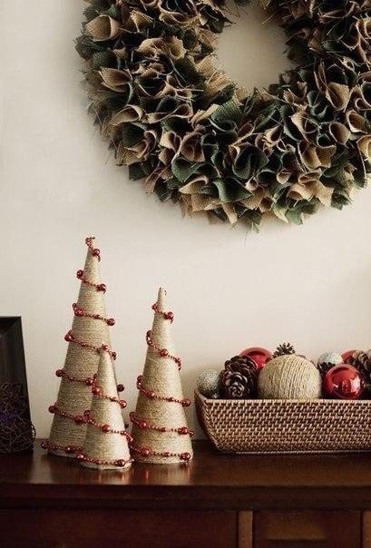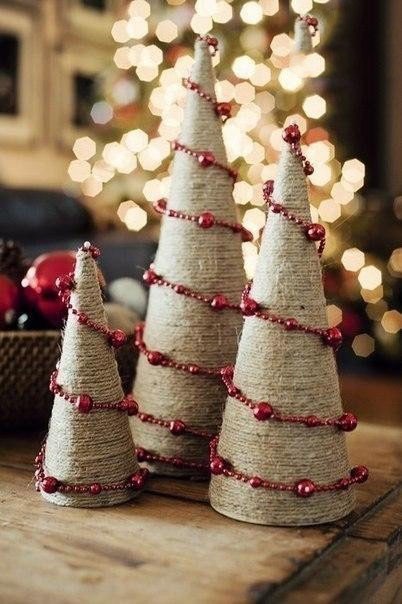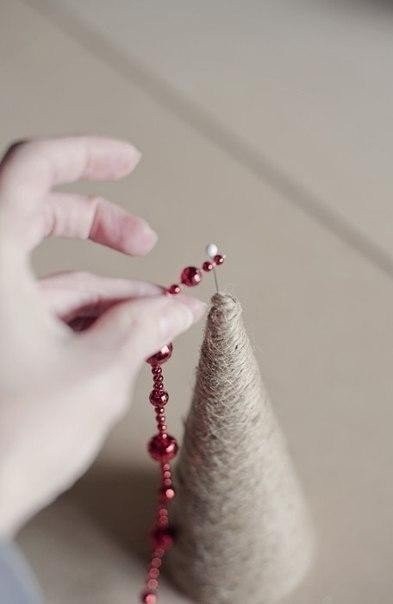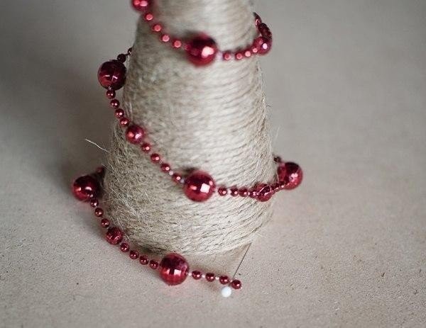Ёлочки из шпагата и бисерной нити