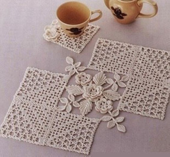 Оригинальная цветочная салфетка выполнена с элементами ирландского кружева.