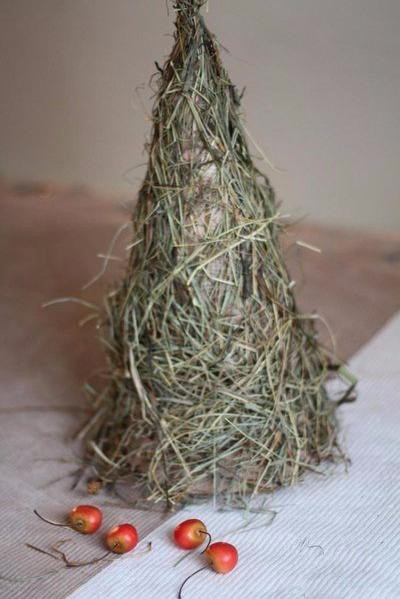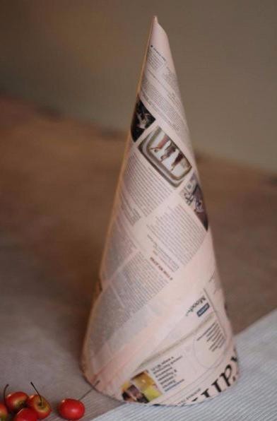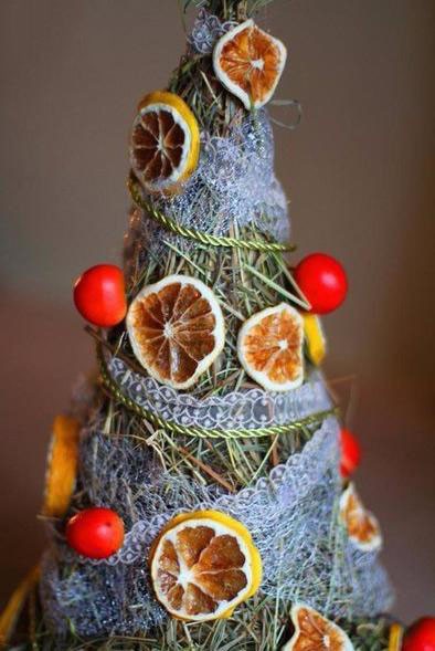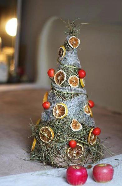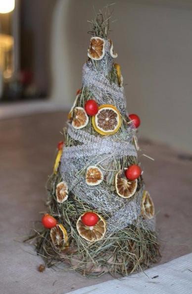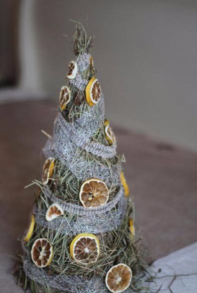 Ёлочка из лимонных долек и соломы в два счёта делается на основе даже обычной старой газеты.