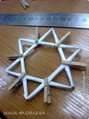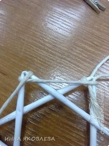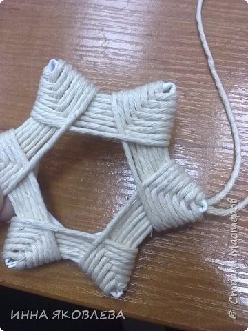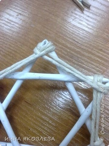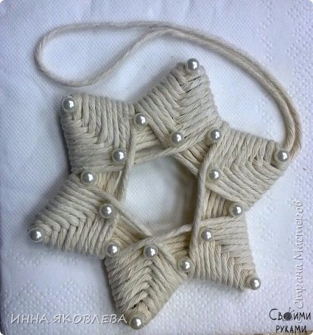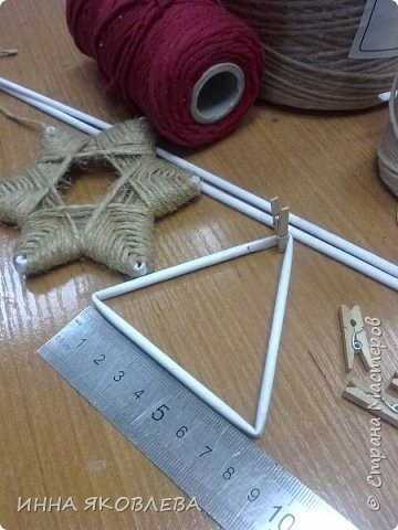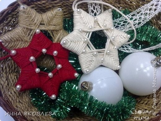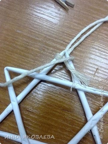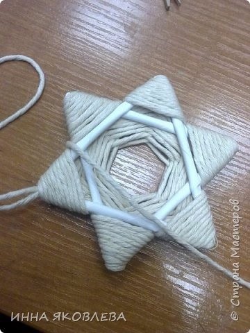 Новогодние звёздочки это простые переплетения шпагата на основе газетных трубочек.
