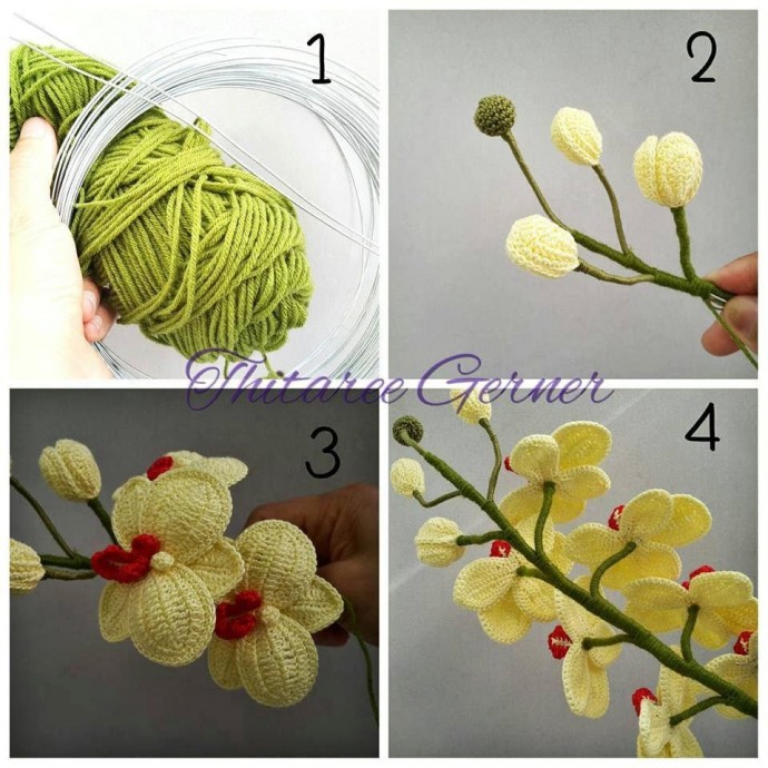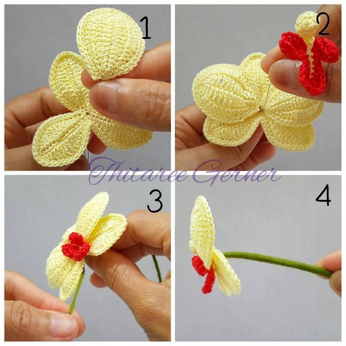 Орхидеи, хоть и связаны крючком, но получаются очень похожими на настоящие.