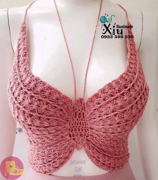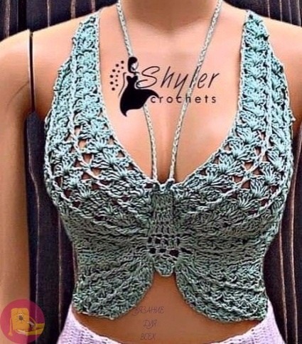 Такой необычный и запоминающийся своей нестандартной красотой топ можно носить и зимой сверху водолазок и рубашек.