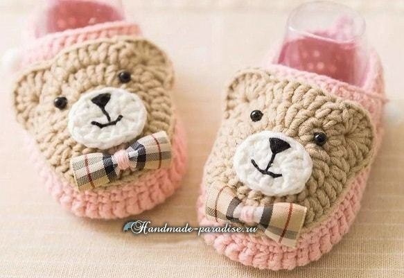Тапочки с мишками можно связать как для детей, так и для взрослых - только измените размер стопы.