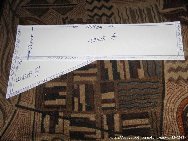 Шаг 1: (я буду показывать пошаговое изготовление ламбрекена на бумаге-надеюсь,что всё будет для вас понятно) И так: Берём вуаль (цвета на ваш выбор) таких размеров и обрабатываем обе заготовки косой бейкой.