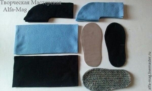 Для тапочек нам понадобится: на основу — флис (велсофт, мех, велюр и так далее), нашивка, ватин и искусственная кожа (плащевка, флис) — для подошвы.