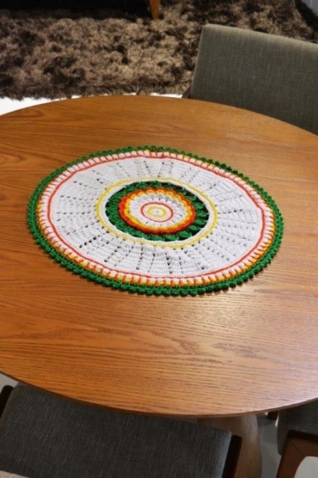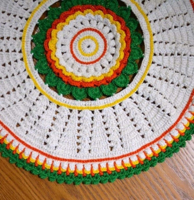 Если связать из толстой пряжи, то будет хороший прикроватный коврик под ноги.