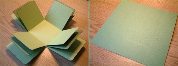 Вырезаем из картона 10 заготовок размером, например, 8х8 см. Из цветной плотной бумаги вырезать 9 прямоугольников размером 5х8 см. Складываем прямоугольники пополам в длину. ...