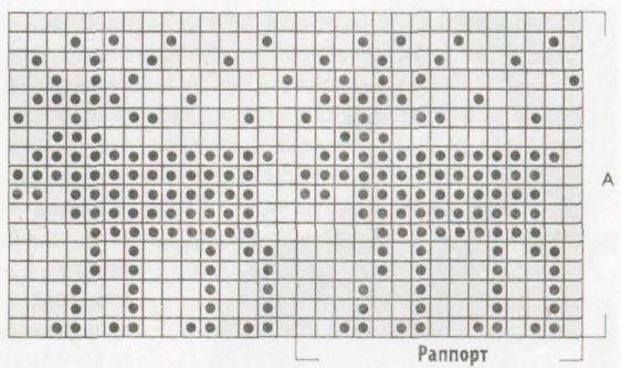 Плотность вязания лиц. гладью: 15 п. = 10 см.