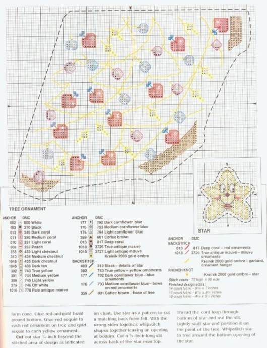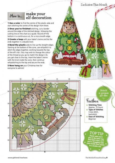 Вышитые конусные елочные игрушки набейте синтепоном или холофайбером, когда они будут готовы.