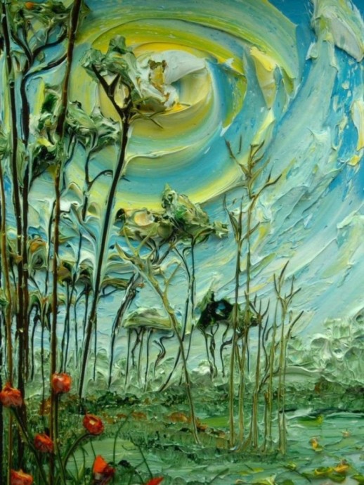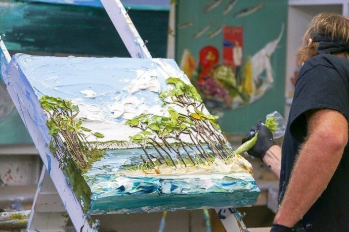 Джастин Геффри не просто пишет свои картины, а вылепляет их из акриловых красок.