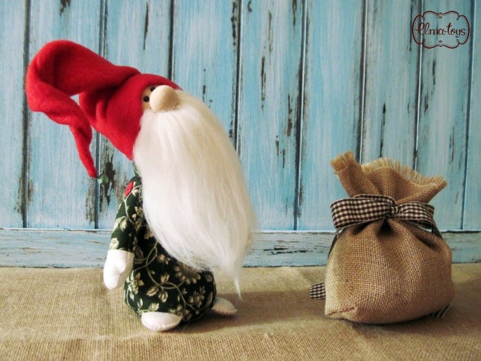 Интерьерный новогодний гномик может быть поставлен как под ёлочку, так и на стол.