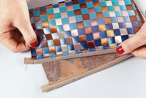 Косметичка из лент нуждается в плотной подкладке.
