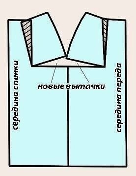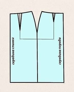 Мягкие складки заложены наискосок. Они начинаются от низа бока и заканчиваются у центра переда и спинки на линии талии (ЛТ). К переднему и заднему полотнищу складки прикреплены отделочной фигурной строчкой, между собой скреплены «шнурочком».