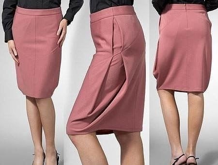 Раскрой. Юбка кроится из двух полотнищ. Боковая линия располагается по косой. Доводку юбки и закладывание складок лучше производить на манекене.