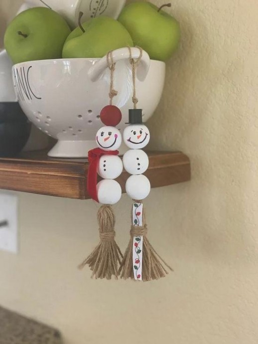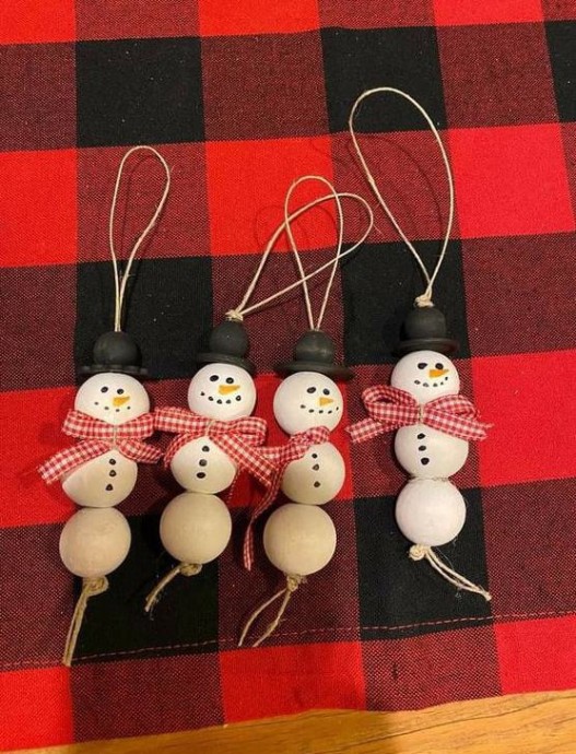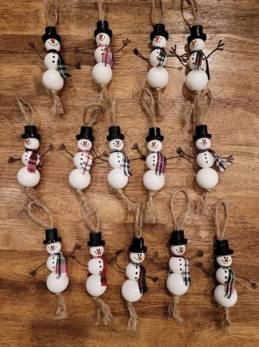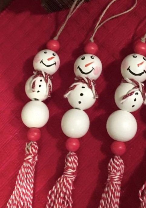 Возьмите бусины и толику вдохновения - и снеговички на ёлочку готовы.