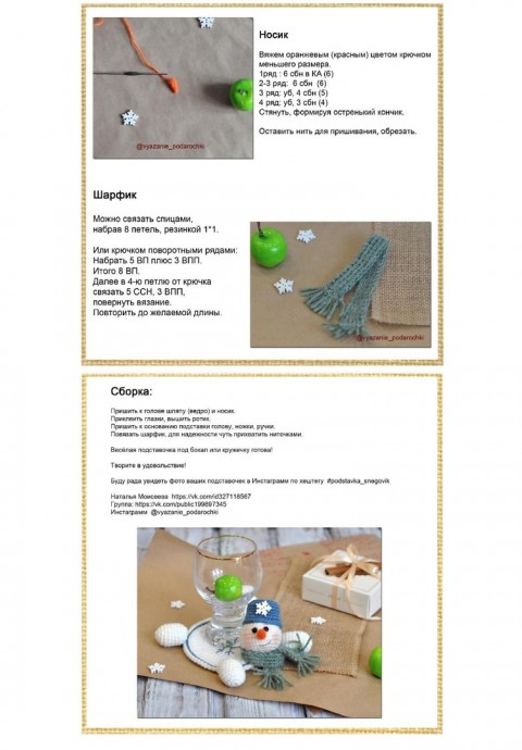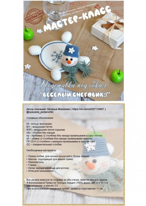 Новогодняя подставка под фужер в виде снеговика порадует во все дни зимы, а не только в праздники.