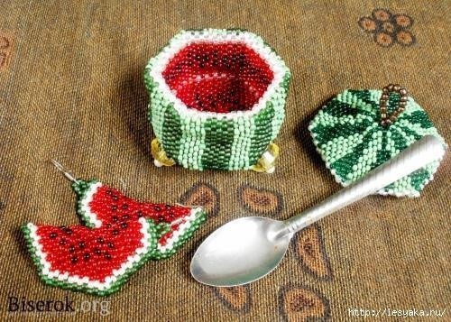 Шкатулка-арбуз из бисера