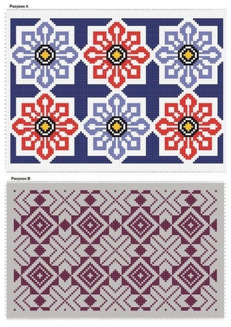 Связать 1 раз рисунок В, используя жаккардовую технику вязания.