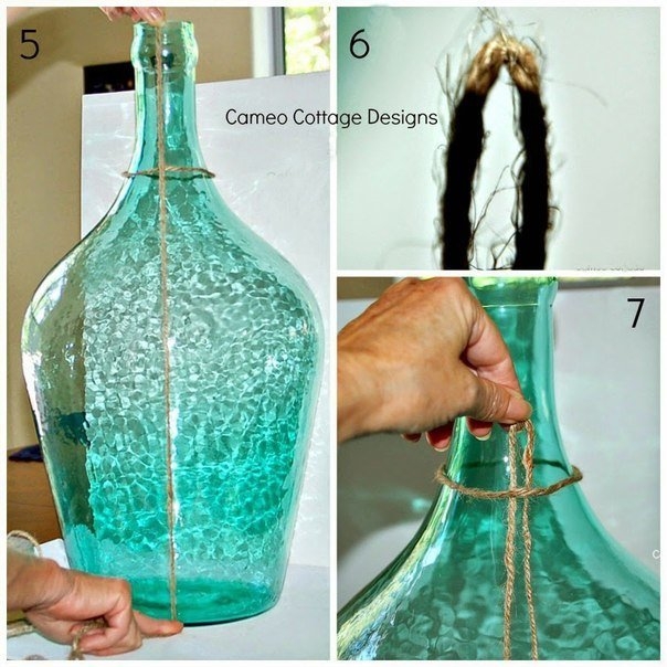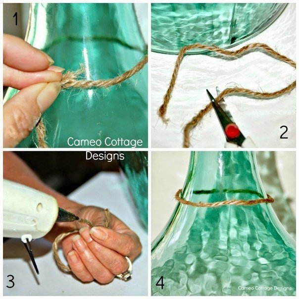 Декор бутылки веревкой