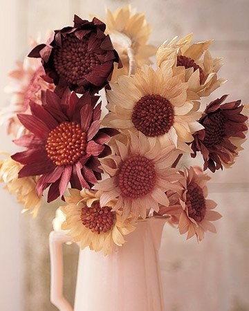 Подсолнух из кукурузыВы можете при желании найти и другой природный материал для изготовления листьев подсолнуха.