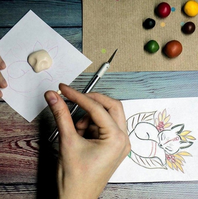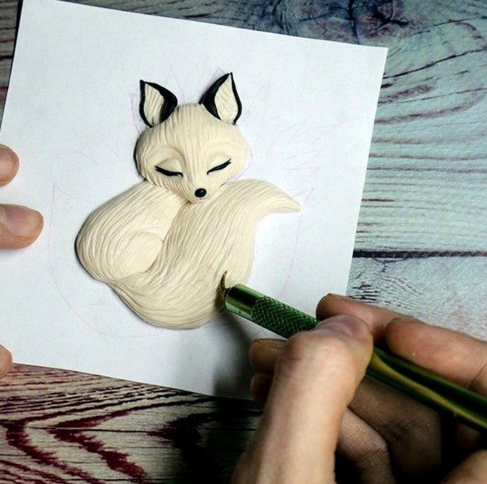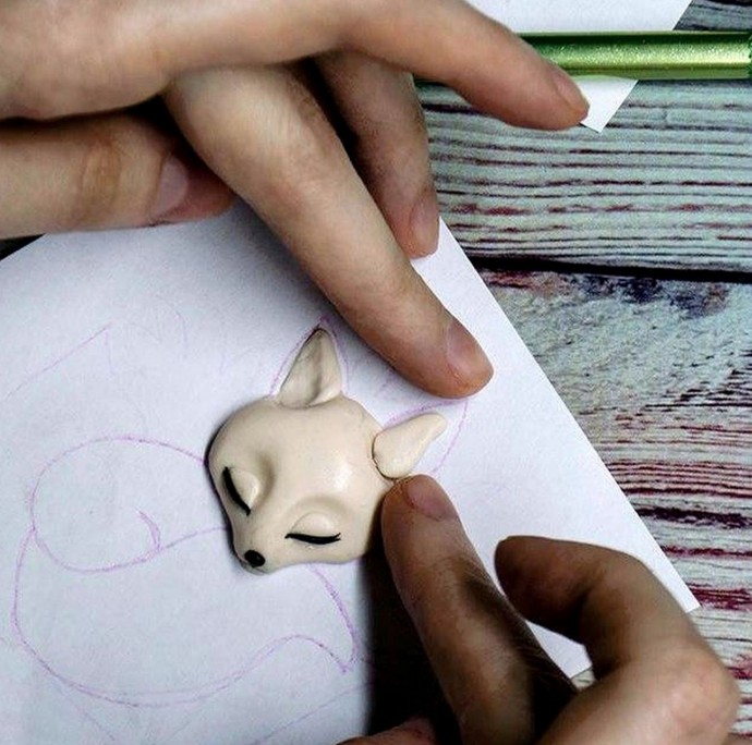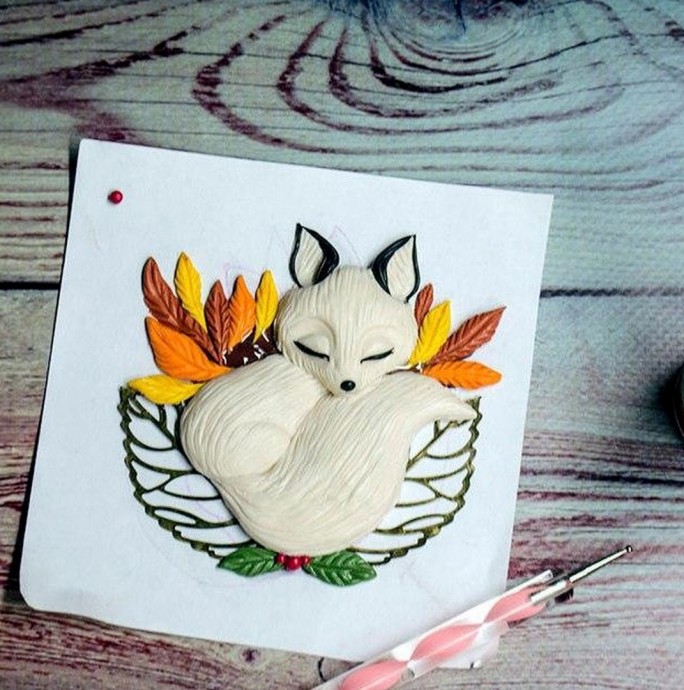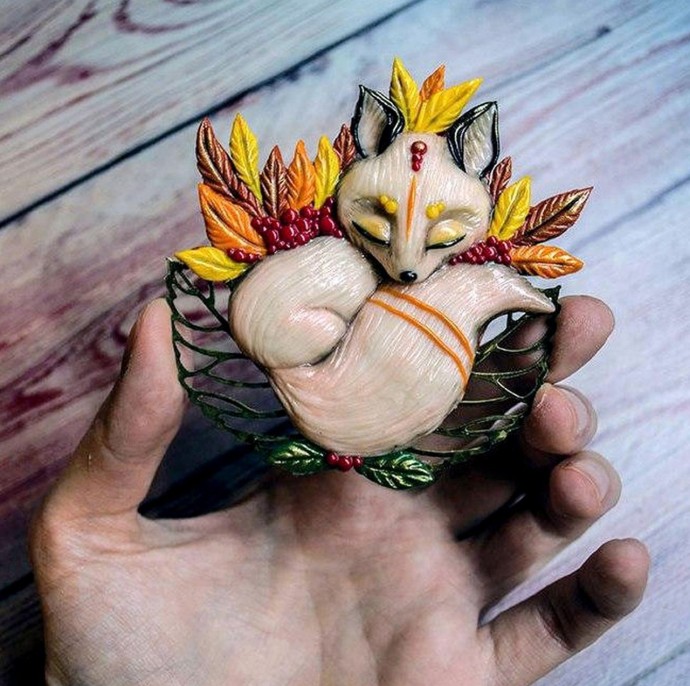 Спящая лисичка может быть сделана как из полимерной глины, так и из соленого теста.
