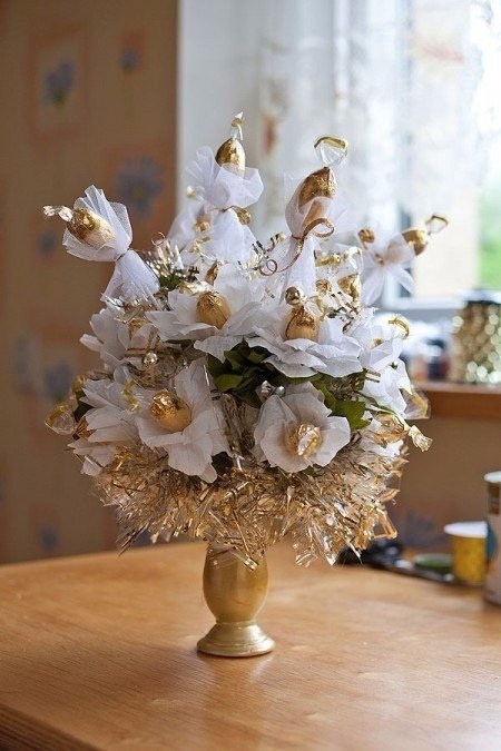 Золотой букет из конфет